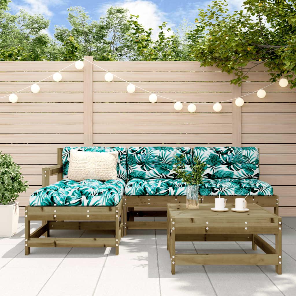 Loungesæt til haven 5 dele med hynder imprægneret fyrretræ