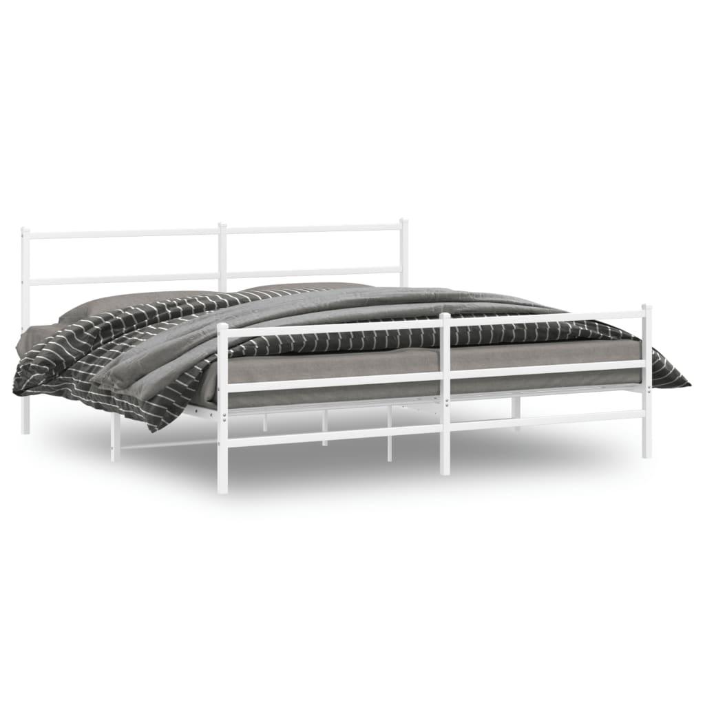 Sengeramme med sengegavl og fodgærde 193x203 cm metal hvid