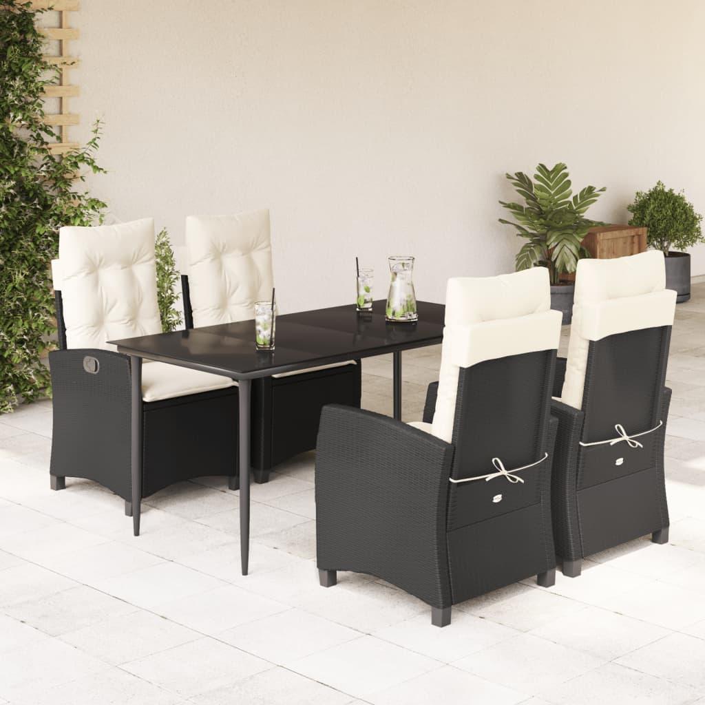 Spisebordssæt til haven 5 dele med hynder polyrattan beige