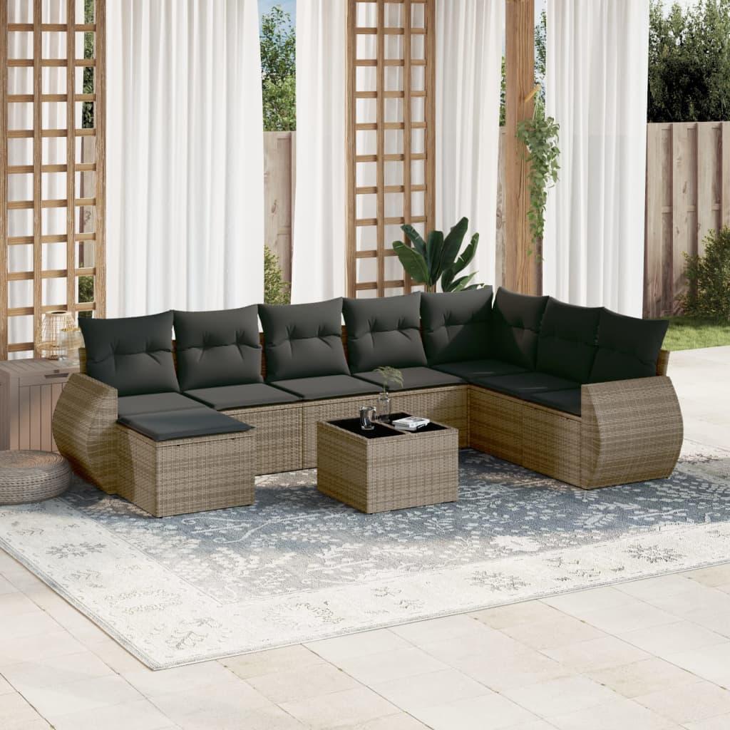 Sofasæt til haven 9 dele med hynder polyrattan grå