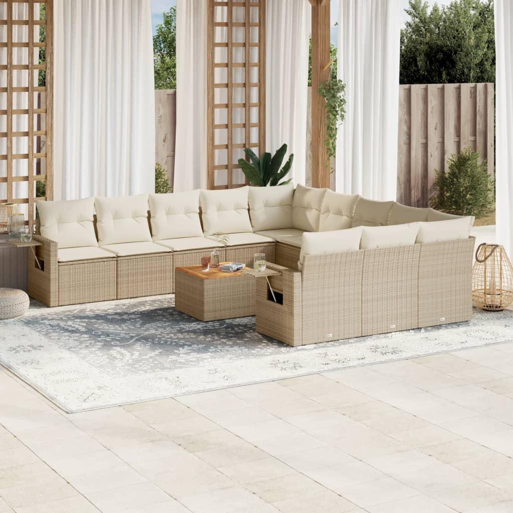 Sofasæt til haven 12 dele med hynder polyrattan beige