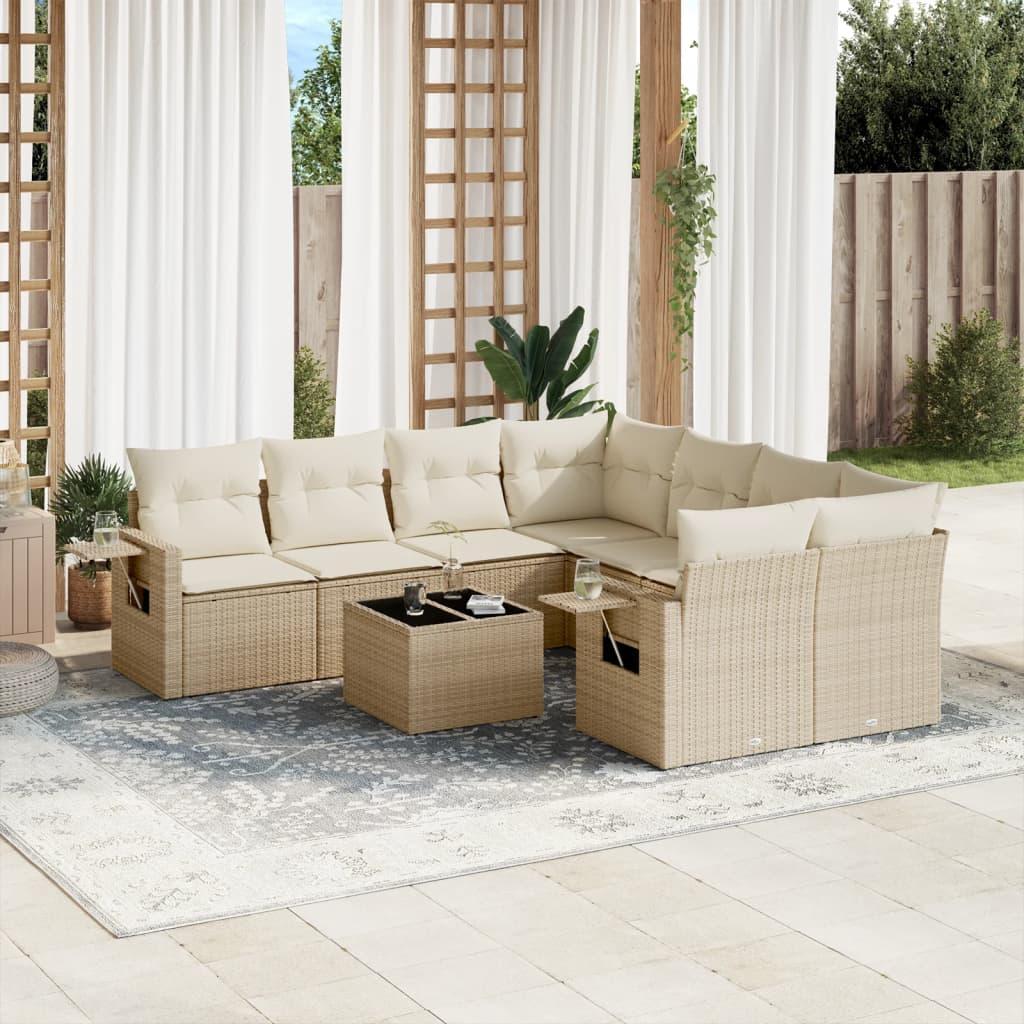 Sofasæt til haven 9 dele med hynder polyrattan beige