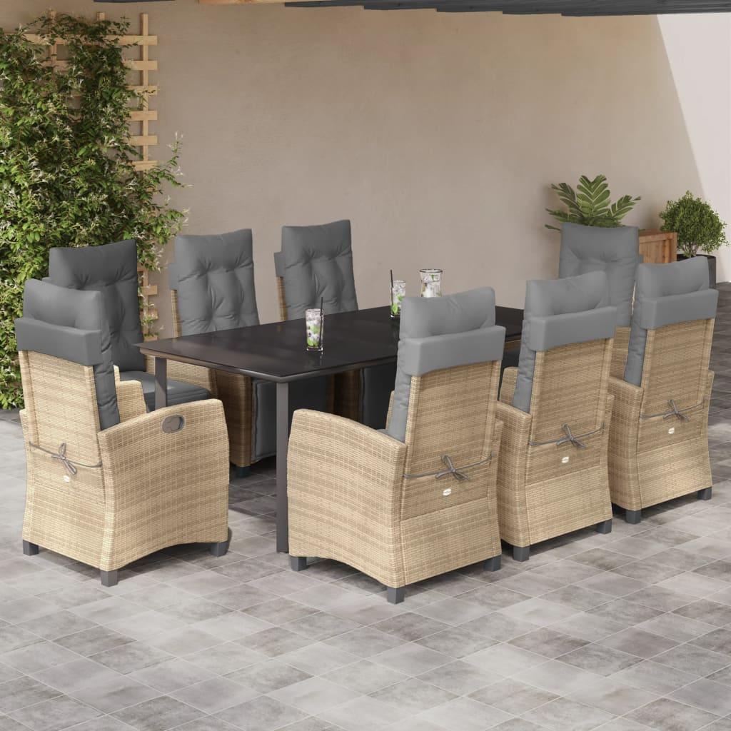 Spisebordssæt til haven 9 dele med hynder polyrattan beige