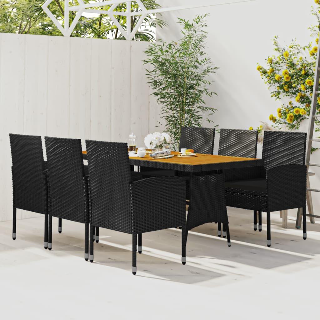 Spisebordssæt til haven 7 dele polyrattan sort