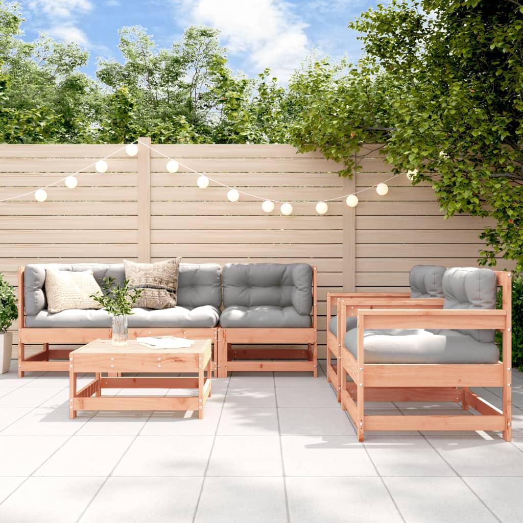 Loungesæt til haven 6 dele med hynder massivt douglasgran