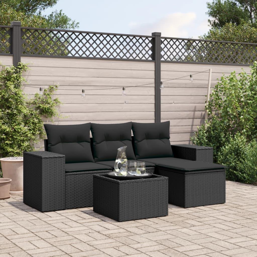 Sofasæt til haven 5 dele med hynder polyrattan sort