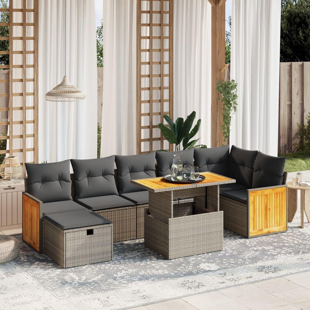 Sofasæt til haven 8 dele med hynder polyrattan grå