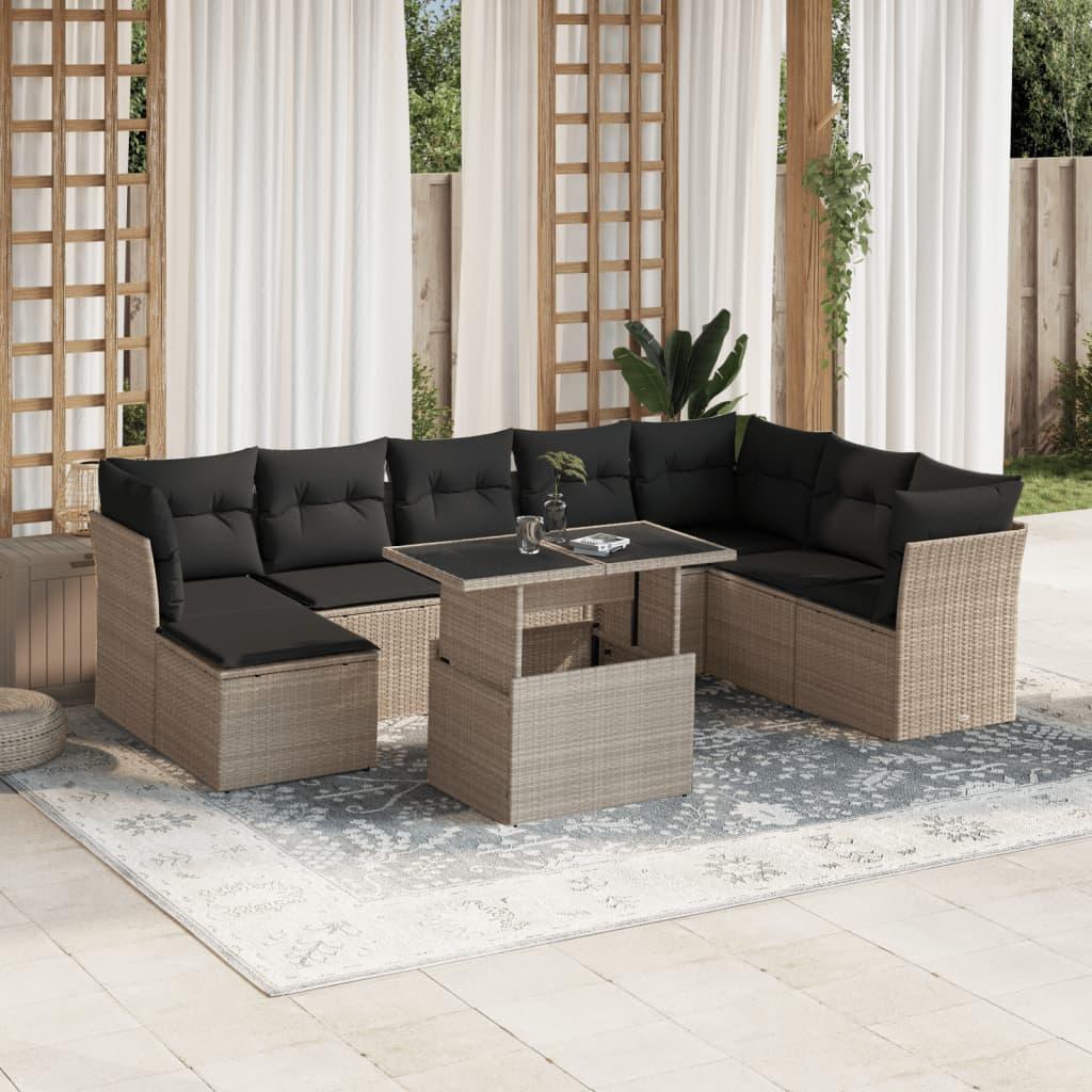 Sofasæt til haven 9 dele med hynder polyrattan lysegrå