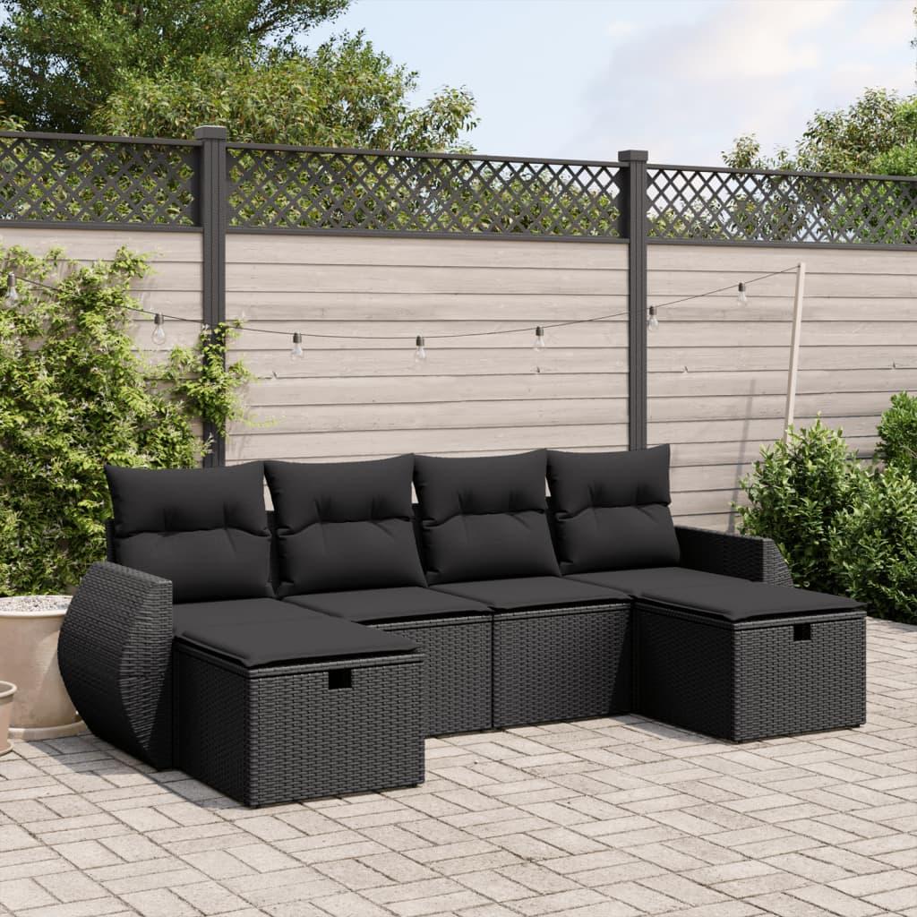 Sofasæt til haven 5 dele med hynder polyrattan sort