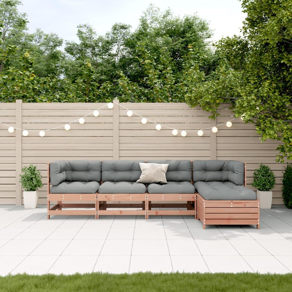 Loungesæt til haven 5 dele med hynder massivt træ douglasgran