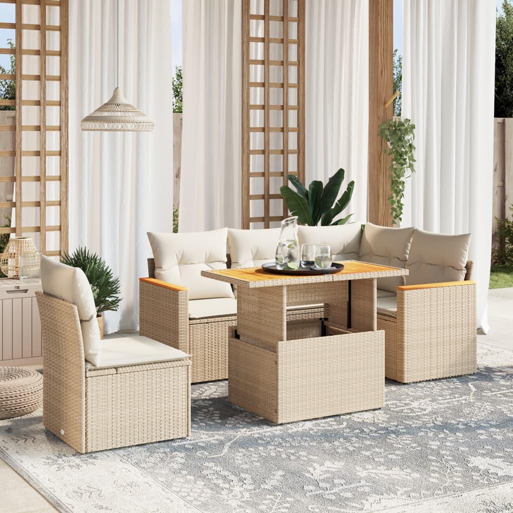 Sofasæt til haven 6 dele med hynder polyrattan beige