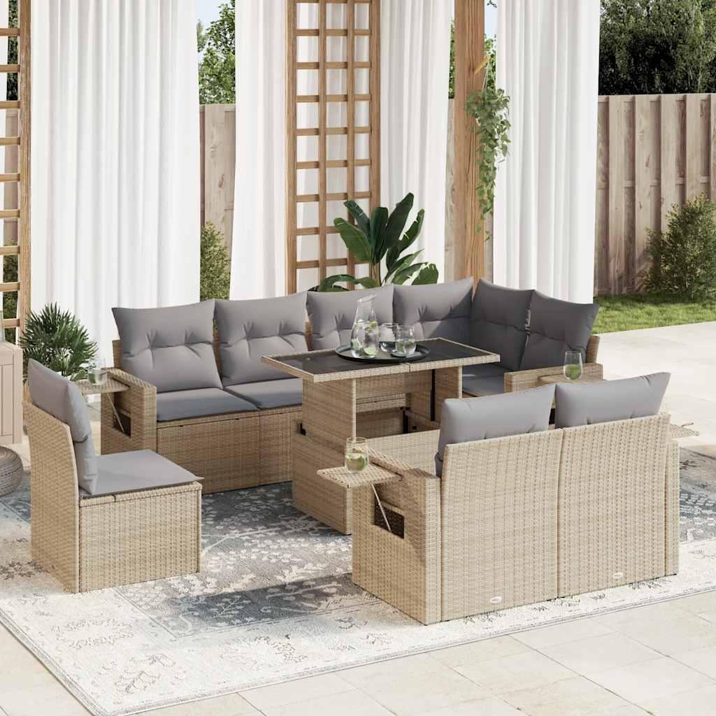 Sofasæt til haven 9 dele med hynder polyrattan beige