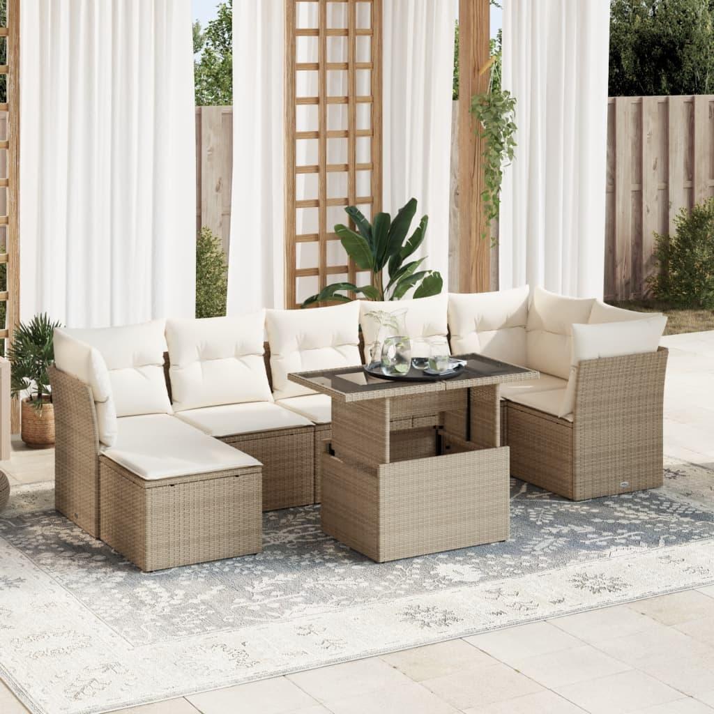Sofasæt til haven 8 dele med hynder polyrattan beige