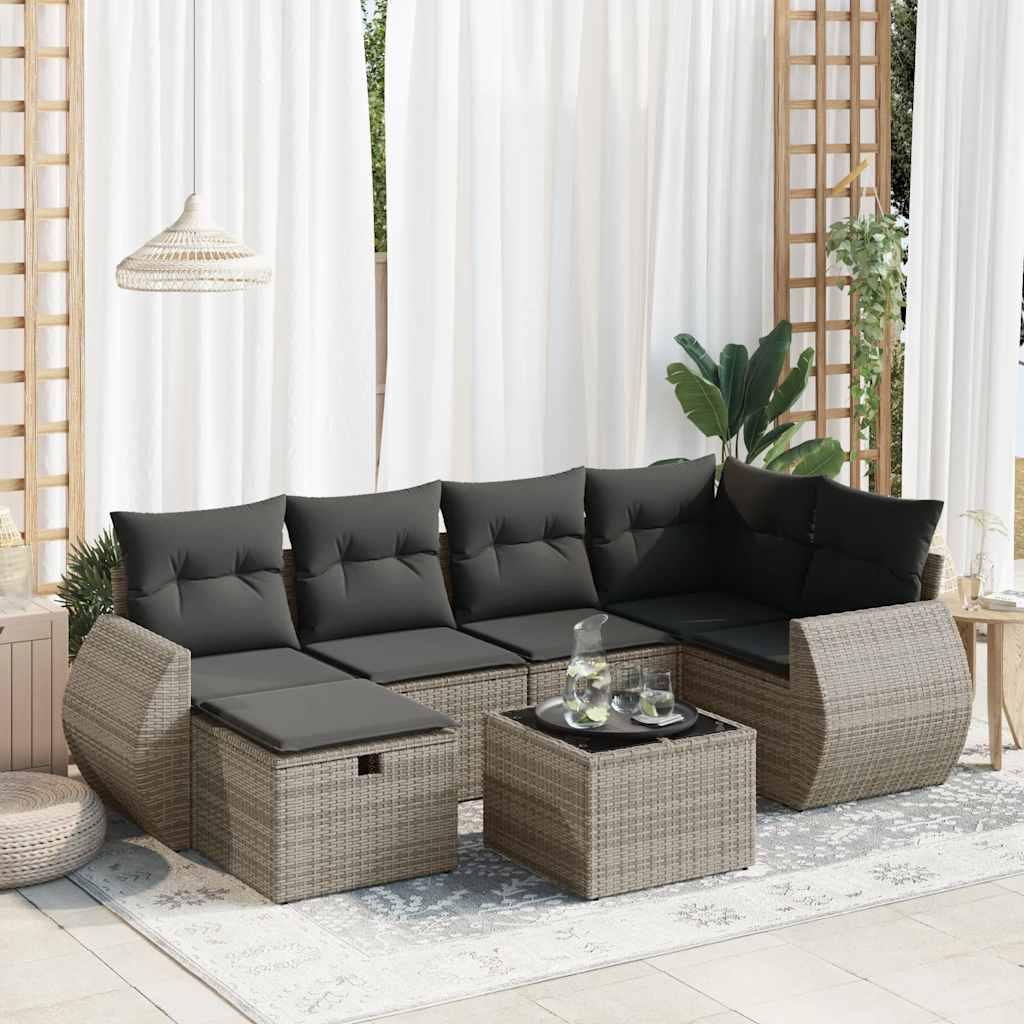 Sofasæt til haven 7 dele med hynder polyrattan sort
