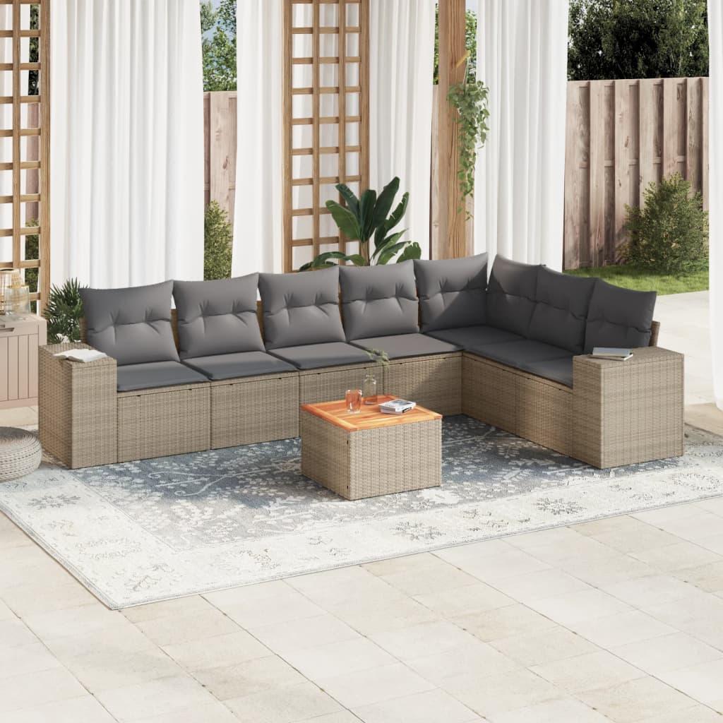 Sofasæt til haven 8 dele med hynder polyrattan beige