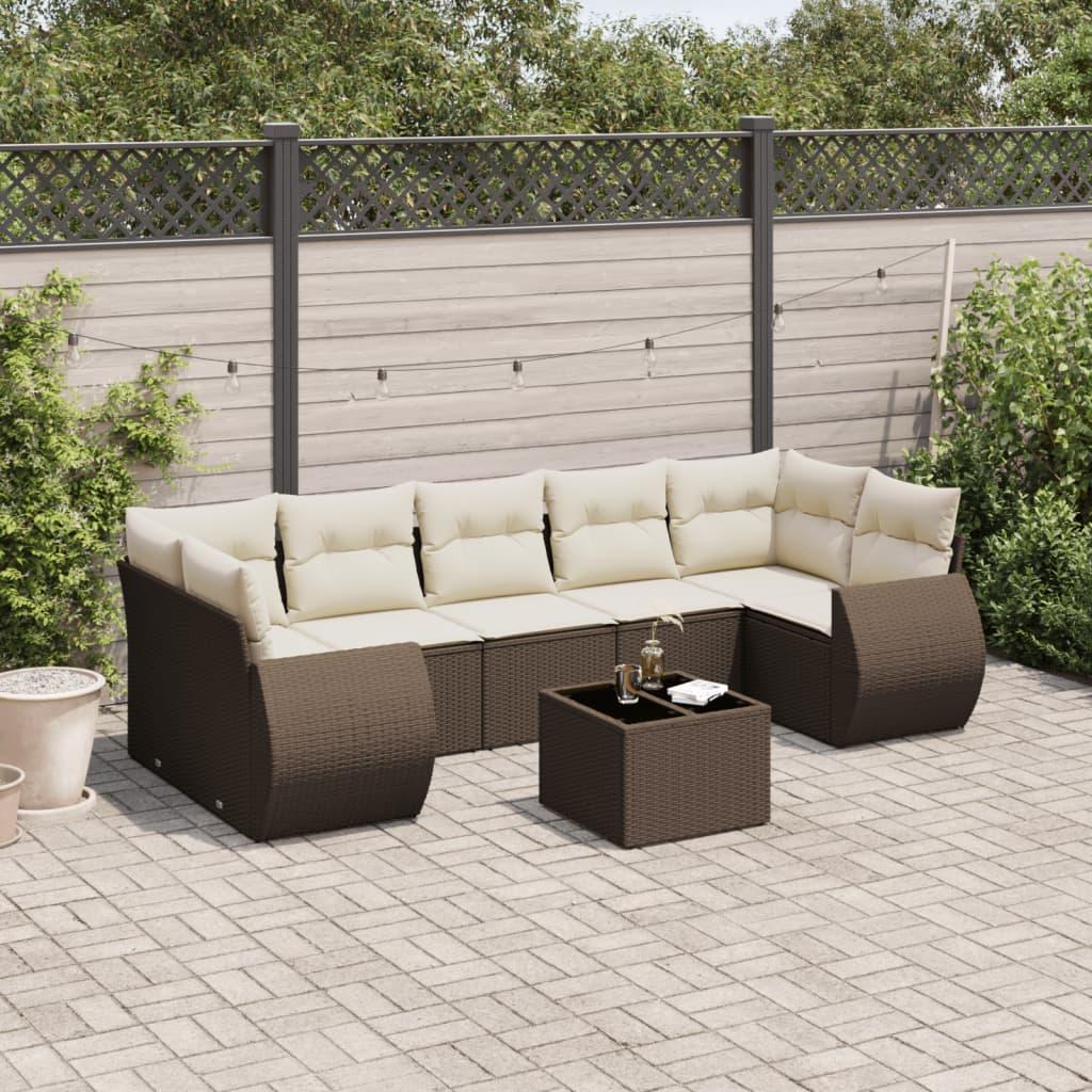 Sofasæt til haven 8 dele med hynder polyrattan brun