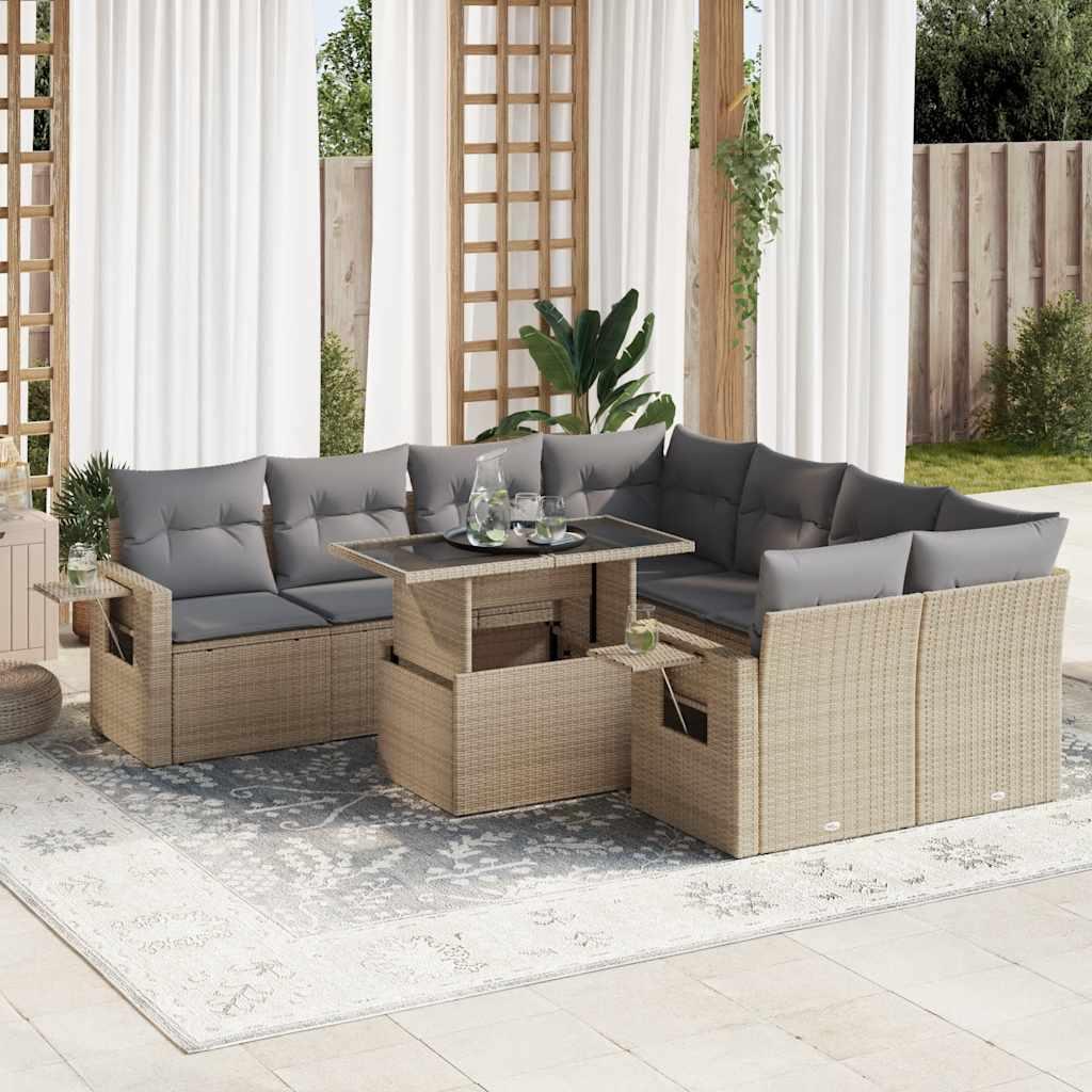 Sofasæt til haven 9 dele med hynder polyrattan beige