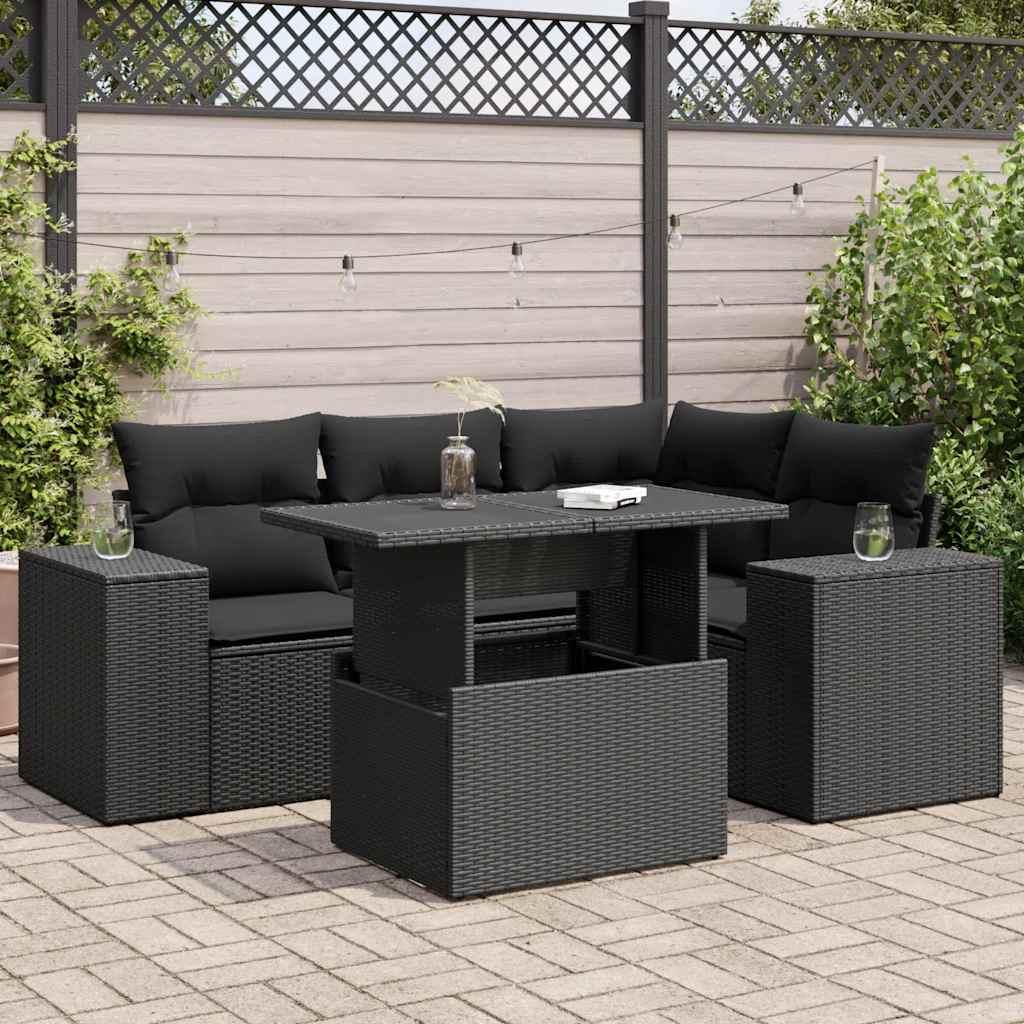 Sofasæt til haven 5 dele med hynder polyrattan sort