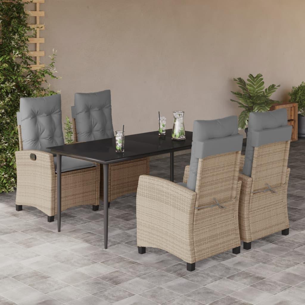 Spisebordssæt til haven 5 dele med hynder polyrattan beige