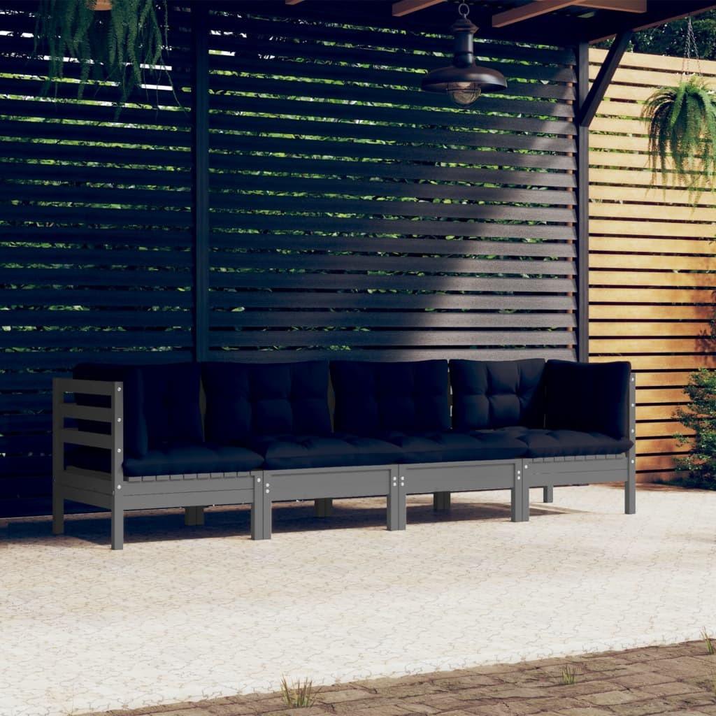 Loungesæt til haven 4 dele med grå hynder fyrretræ
