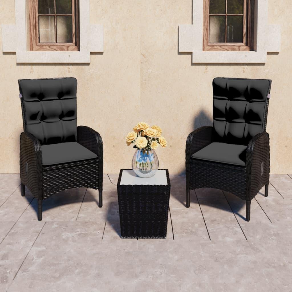 Bistrosæt til haven 3 dele polyrattan og glas sort