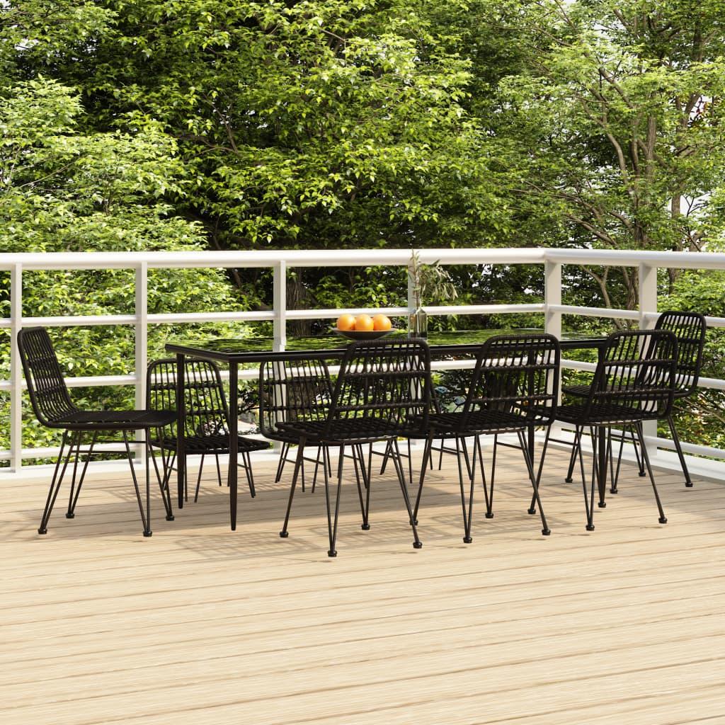 Spisebordssæt til haven 7 dele polyrattan sort