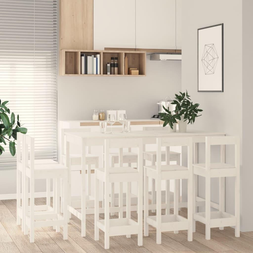 Barsæt 9 dele massivt fyrretræ hvid