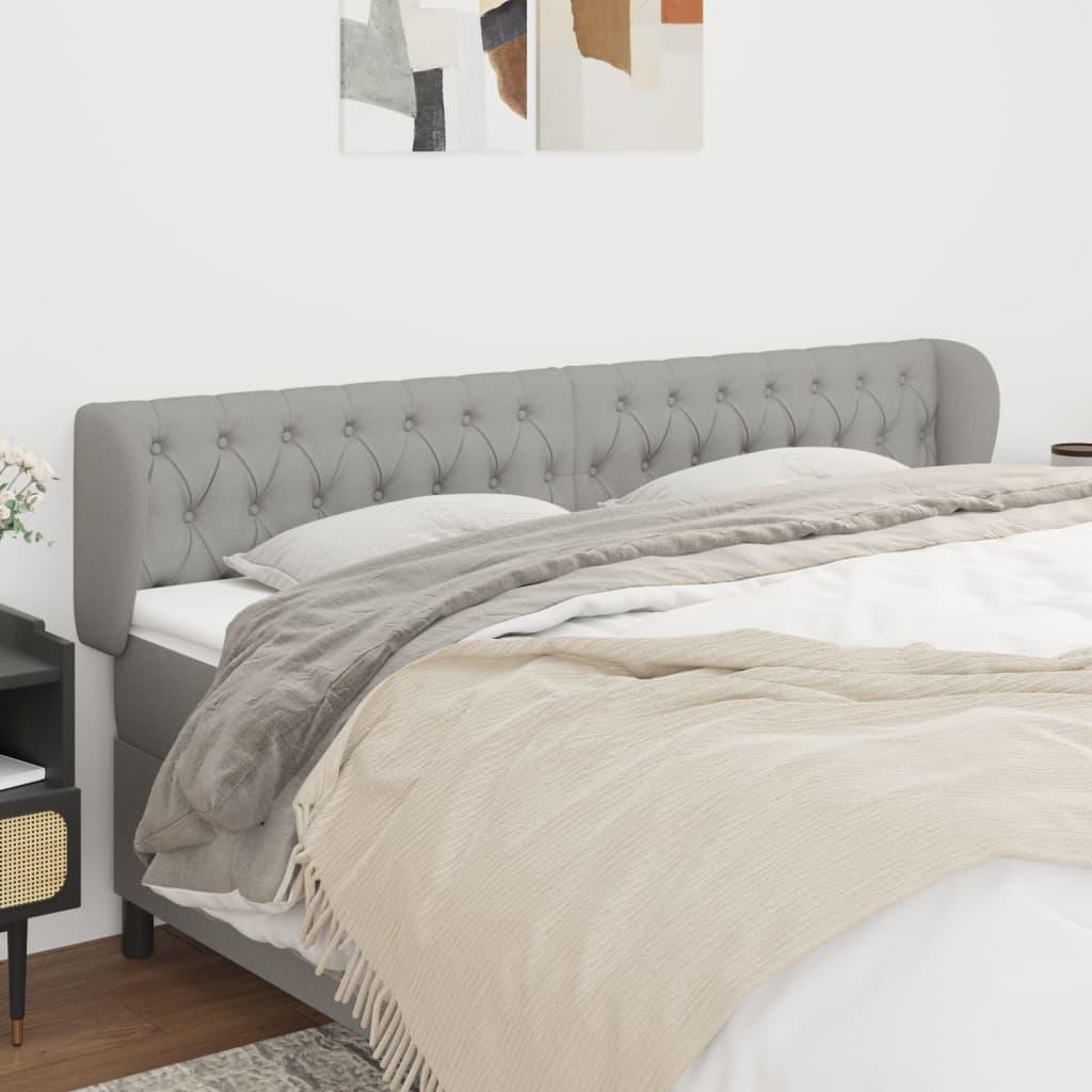 Sengegavl med kanter 183x23x118/128 cm stof lysegrå