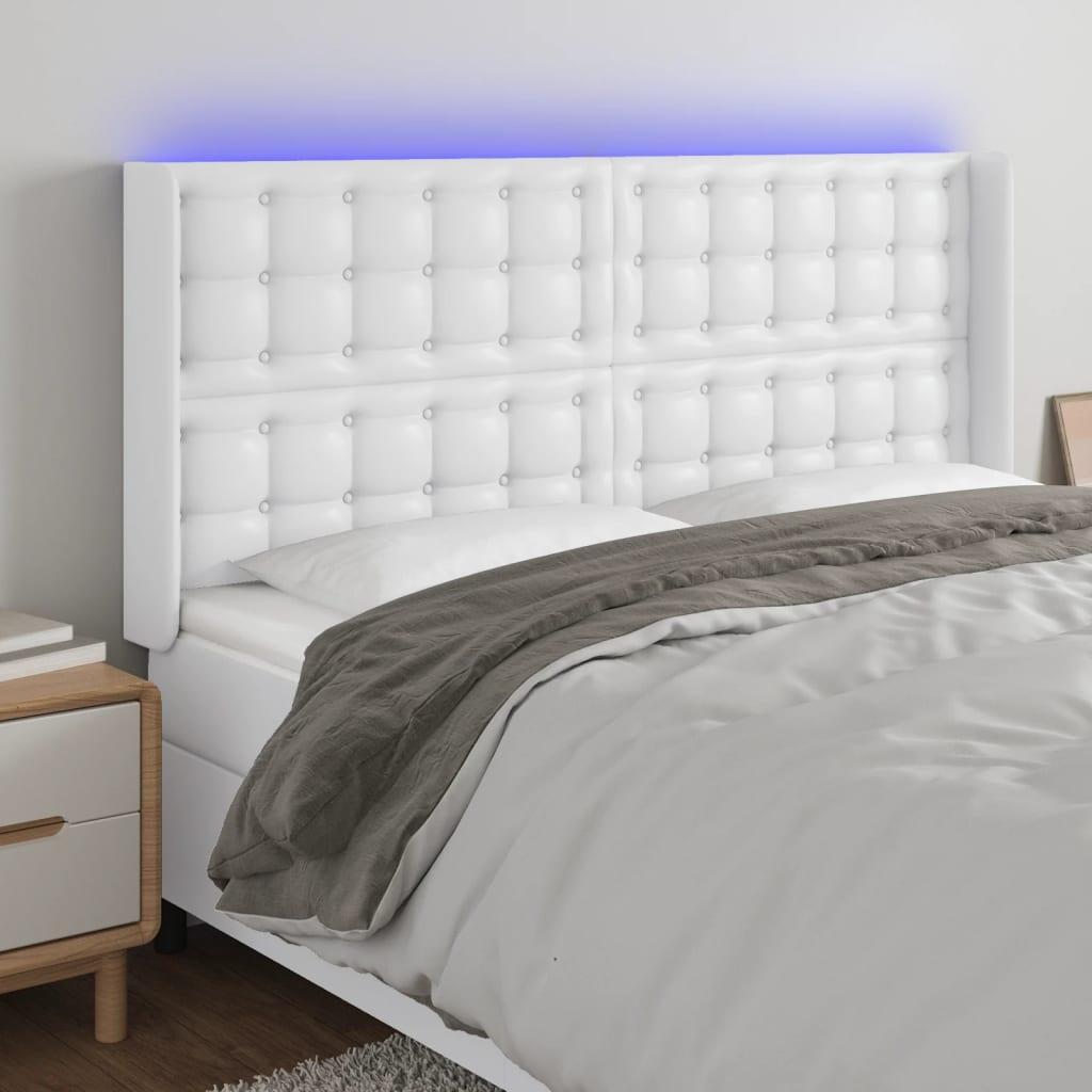Sengegavl med LED-lys 203x16x118/128 cm kunstlæder hvid