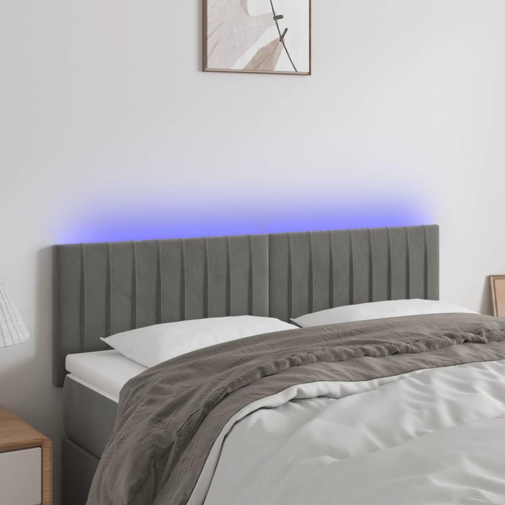 Sengegavl med LED-lys 147x16x78/88 cm fløjl lysegrå
