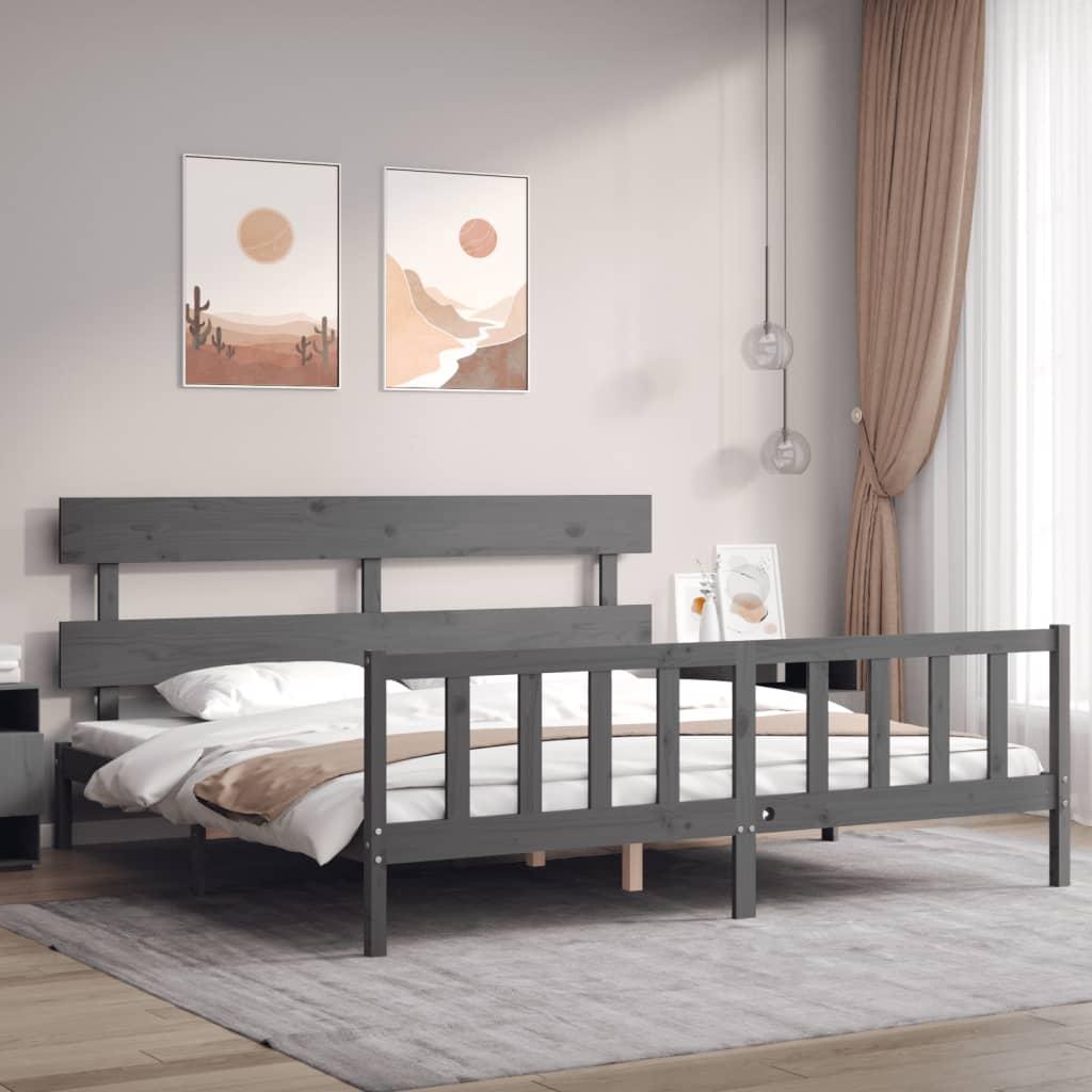 Sengeramme med sengegavl 200x200 cm massivt træ grå
