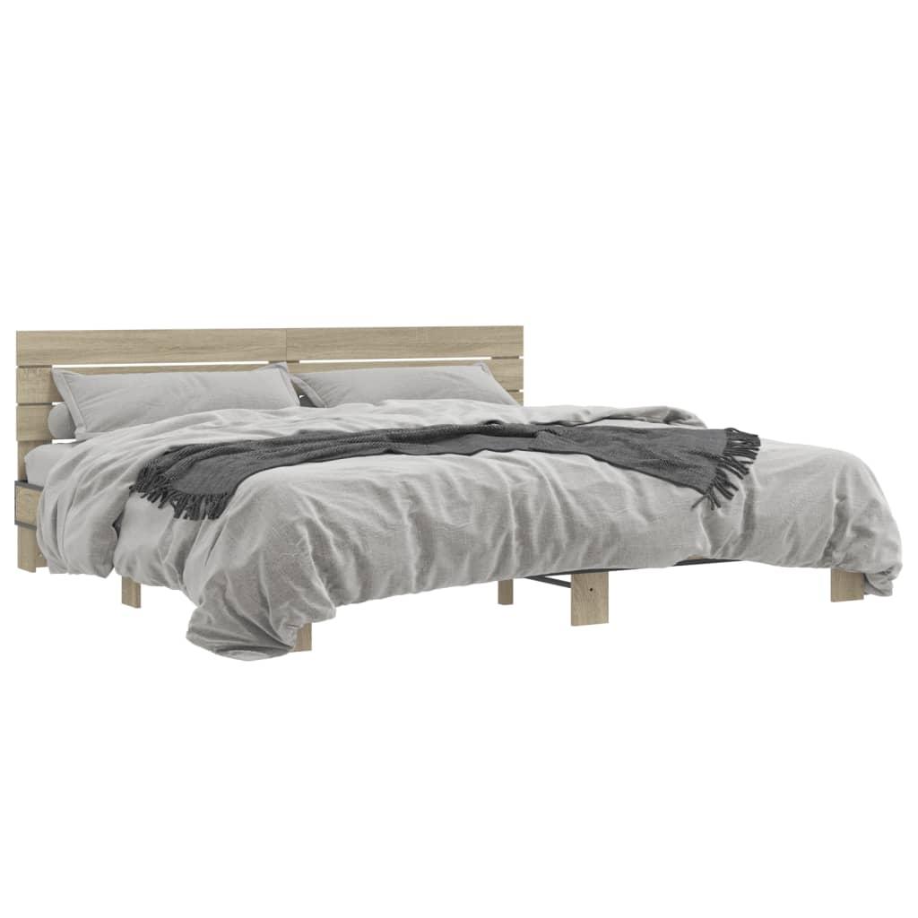 Sengestel 140x190 cm konstrueret træ og metal sonoma-eg