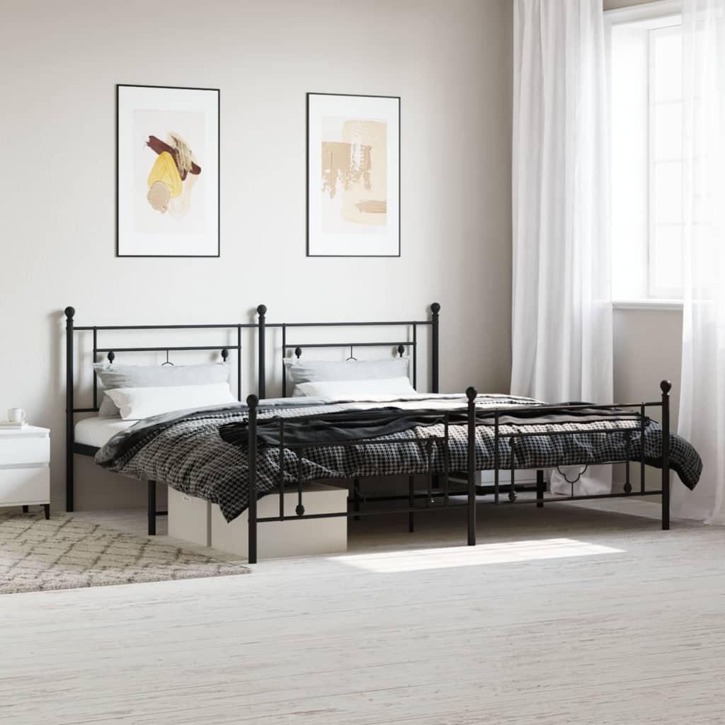 Sengeramme med sengegavl og fodgærde 193x203 cm metal sort