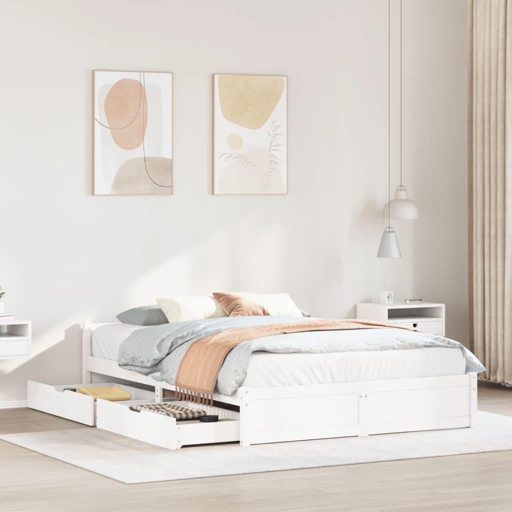 Sengeramme med skuffer 120x200 cm massivt fyrretræ hvid