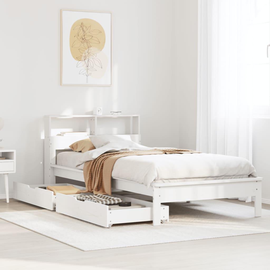 Seng med reol uden madras 75x190 cm massivt fyrretræ hvid