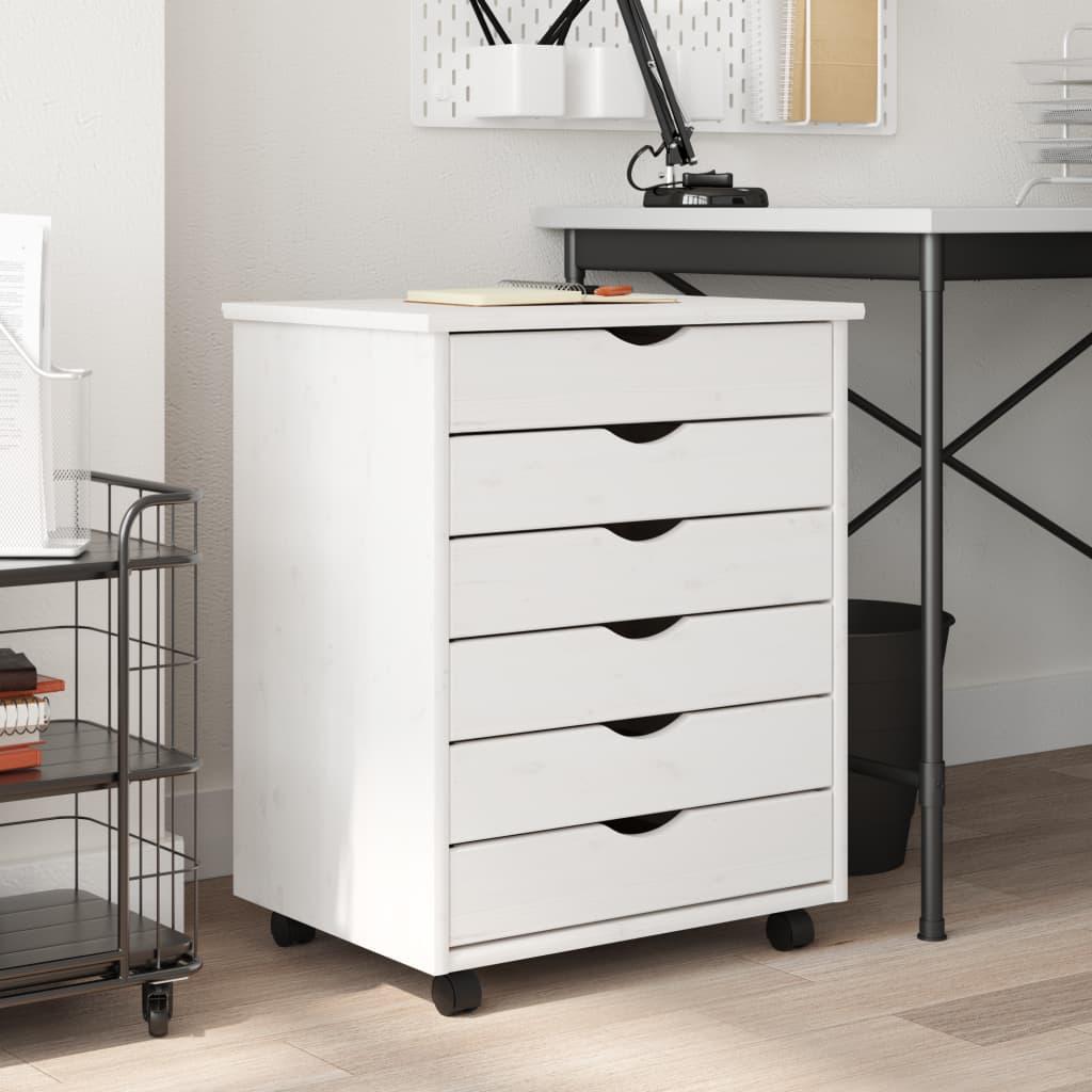 Skuffeskab med skrivebordsplade MOSS massivt fyrretræ hvid
