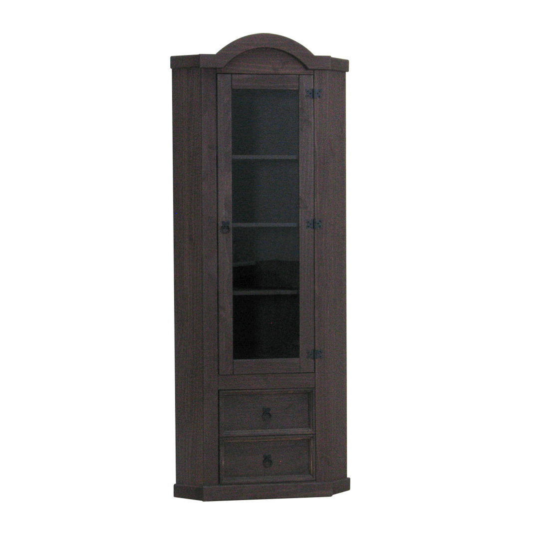 New Mexico hjørneskab med 1 glaslåge og 2 skuffer i kolonial bejdse voks