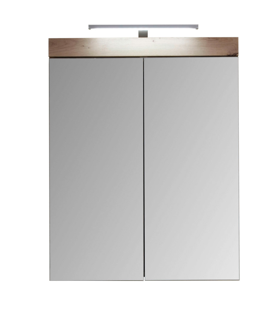 AmandaMando spejlskab badeværelse 2 låger inklusive lys mørk eg dekor, spejlglas