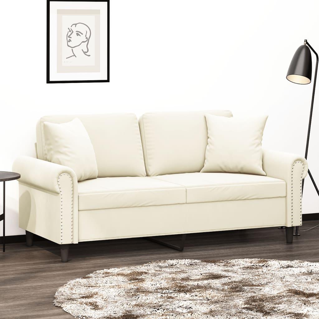 2-personers sofa med pyntepuder 140 cm velour cremefarvet
