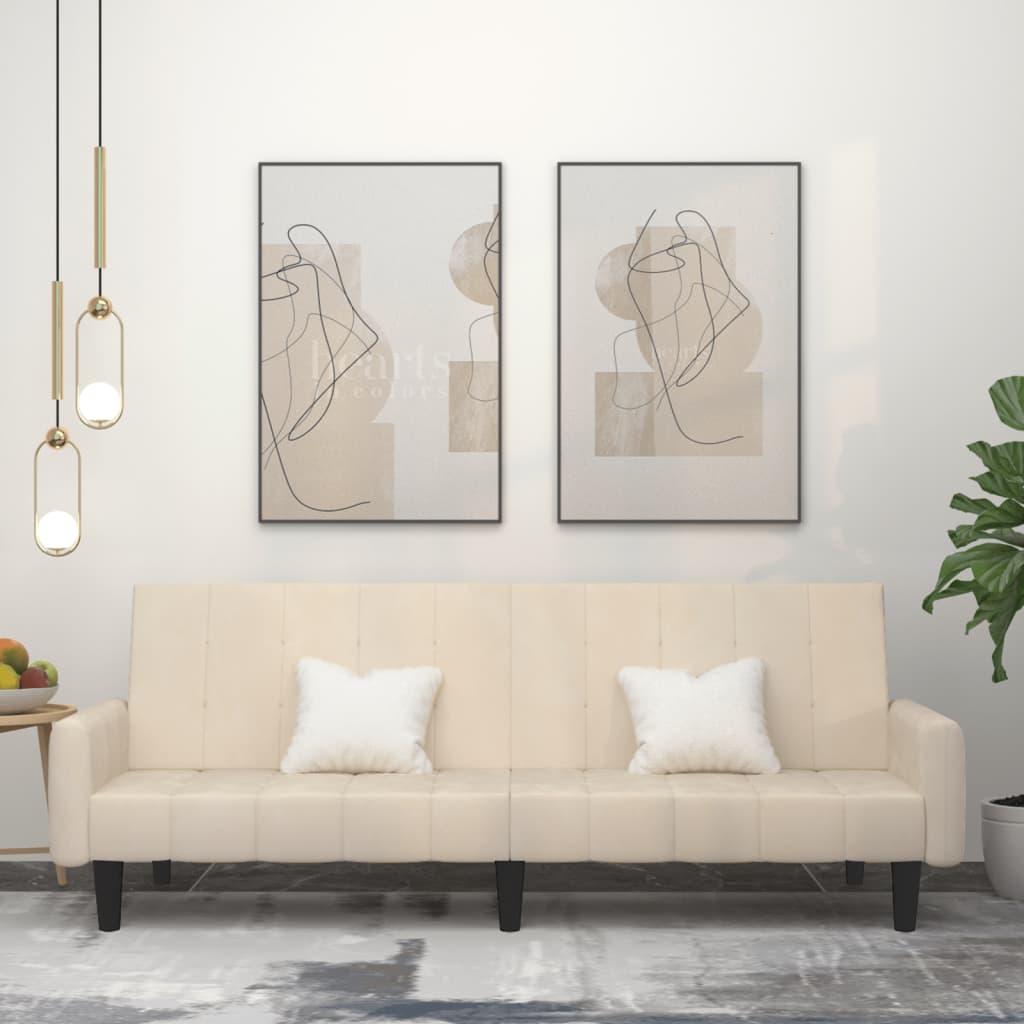 2-personers sovesofa med 2 puder stof cremefarvet