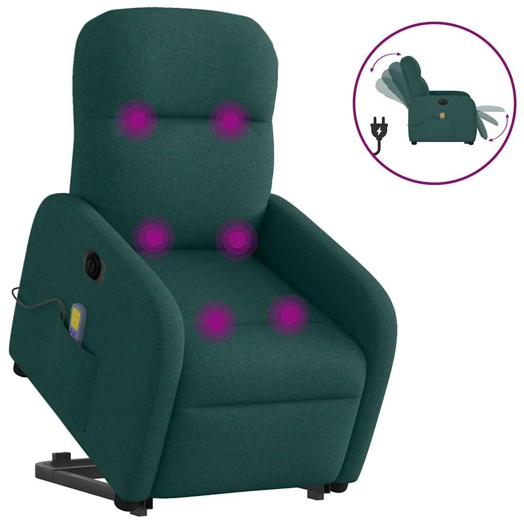Elektrisk massagestol med løftefunktion stof mørkegrøn