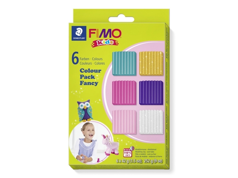 STAEDTLER FIMO 8032002 - modelleringsler - guld - lilla - lilla - pink - turkis - hvid - børn - 6 farver - 110 °C - 42 g