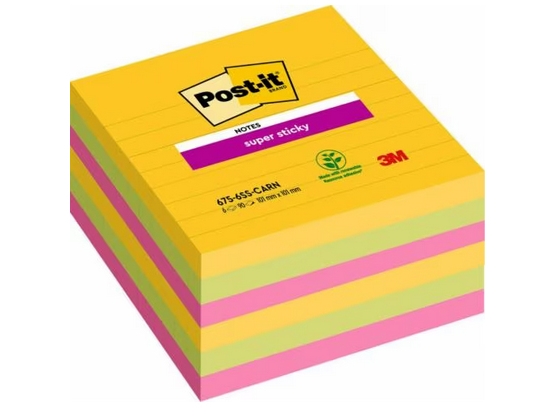 Post-It 3M Post-it® Super Sticky XL klistermærker, CARNIVAL, på linje, 101x101mm, 6x90 kort.