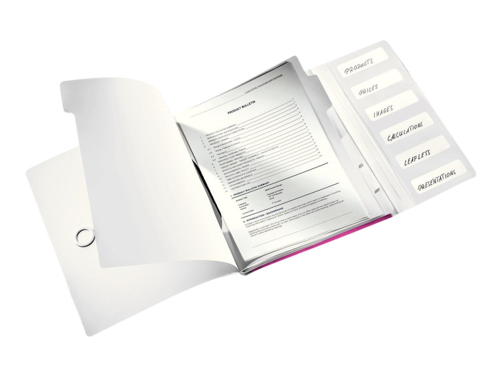 Leitz WOW - Klassificeringsmappe - 6 rum - 6 dele - for A4 - kapacitet: 200 ark - med faneblade - metallisk pink