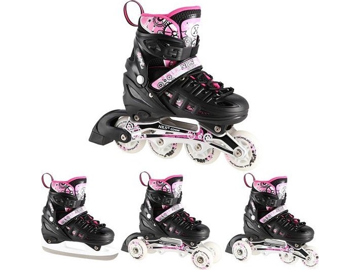 Nils Extreme NH10905 4in1 sort LED rulleskøjter ROZM. L(39-42) ROLLESKØJTER MED HOCKEYSKO NILS EXTREME