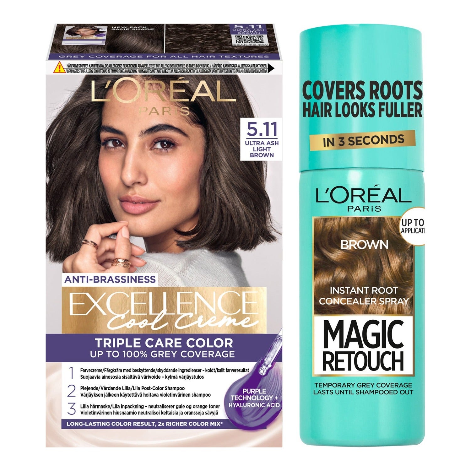 L'Oréal Paris Excellence Excellence 5.11 Ultra Ash Light Brown + Magic Retouch Roots 3 Brown