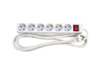 stikdåse Schuko, 6 udtag med afbryder, hvid, 3 m