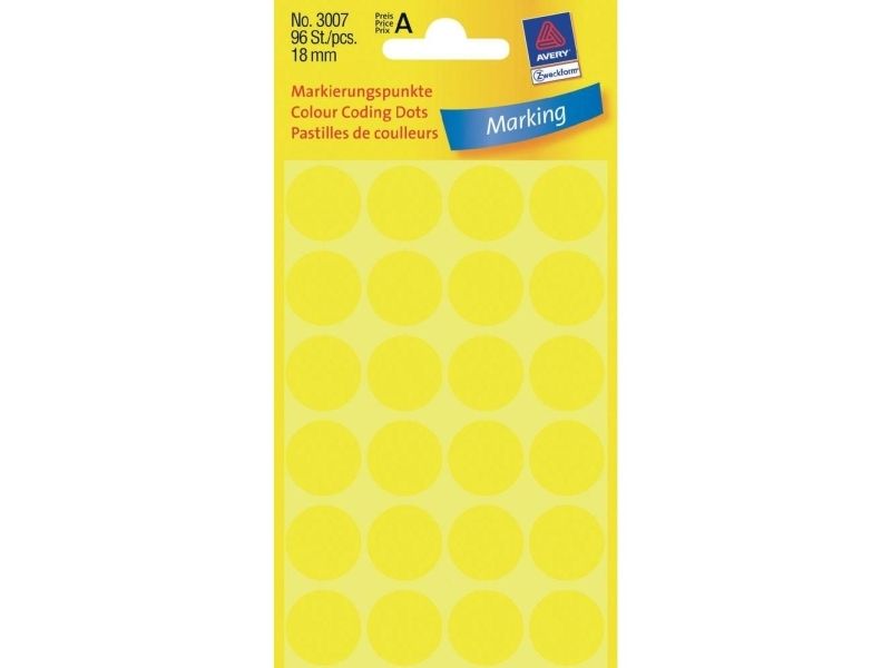 Etiket Avery gul Ø18 mm - (4 ark x 24 stk.)