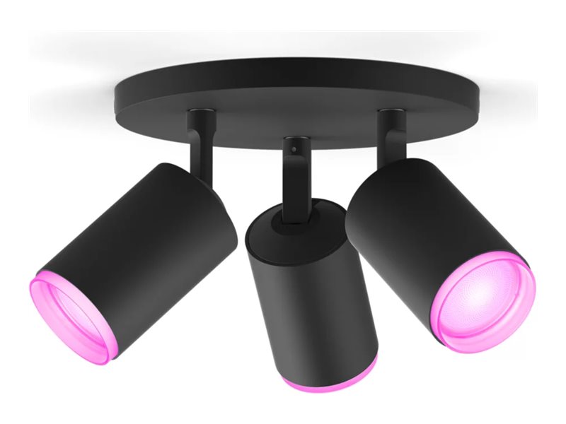 Philips Hue White and Color Ambiance Fugato - Spotlys - LED-spot lyspære x 3 - GU10 - total: 12.6 W - klasse E - 16 millioner farver/varmt til køligt hvidt lys - 2000-6500 K - tredobbelt - sort