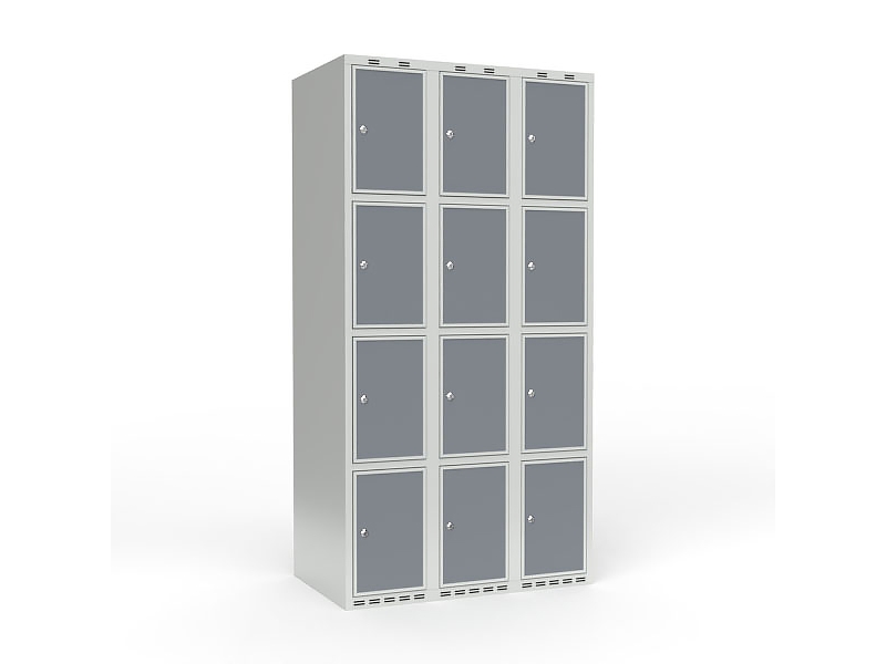 Skoleskab 3x300 Lige tag 4 rum i højden Lys grå laminatdør Greb for hængelås